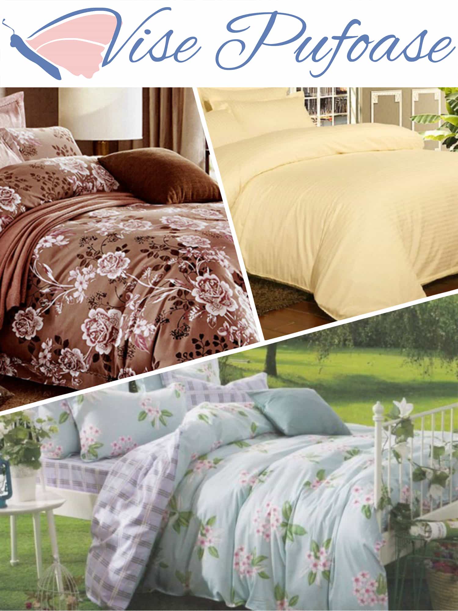 Imprimeurile sunt diverse, de la forme geometrice, până la motive florale/ vegetale – iar culorile alese în cele mai multe cazuri sunt maro, crem, mov, bleu. Ți-am stârnit curiozitatea? Intră aici: https://www.visepufoase.ro/categorie/lenjerii-elegance.